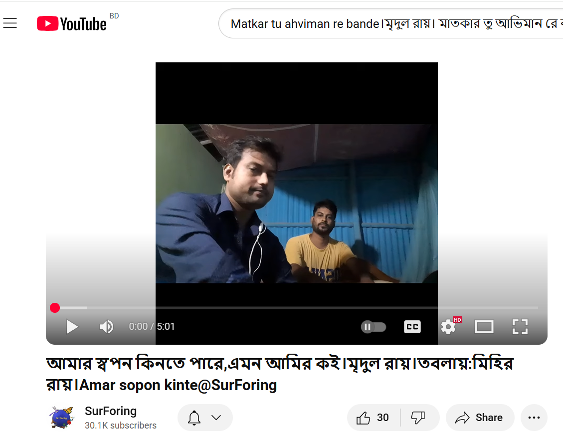 2. Search the keyword =Matkar tu ahviman re bande।মৃদুল রায়। মাতকার তু আভিমান রে বান্দে@SurForing